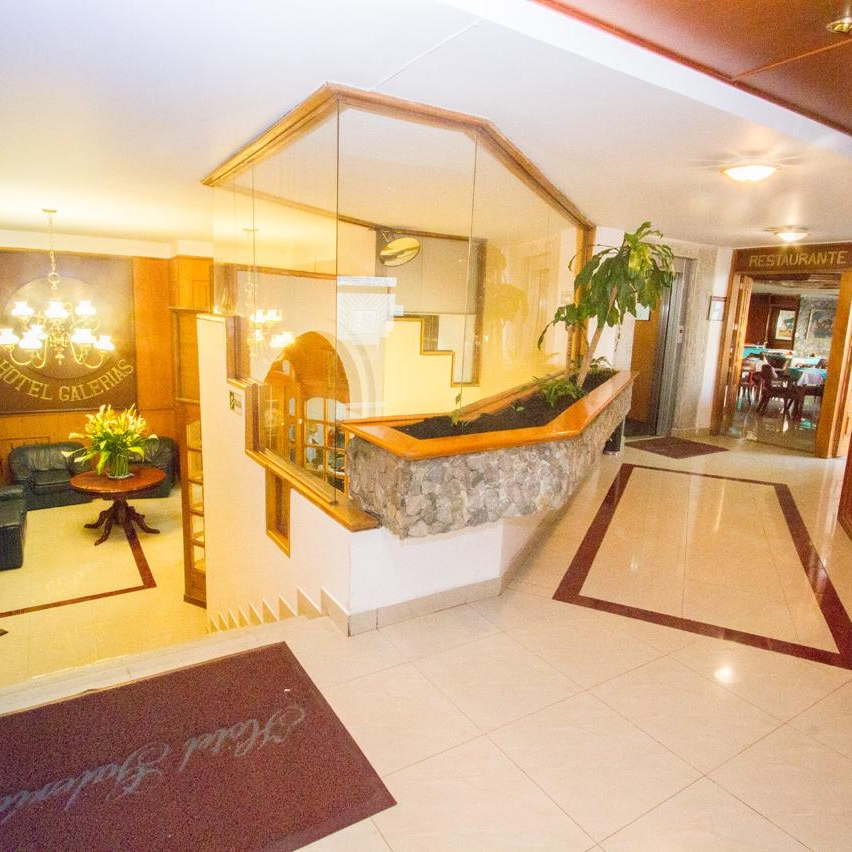 Con mas de 31 años de Tradición, el Hotel Galerías, ha logrado consolidar una posición en el medio hotelero, con reconocimiento tanto en la región como a nivel nacional , tiene una ubicación estratégica, esta, en el tercer nivel del Centro Comercial Galerías, en pleno centro de Pasto, y muy cerca a la Plaza de Nariño.